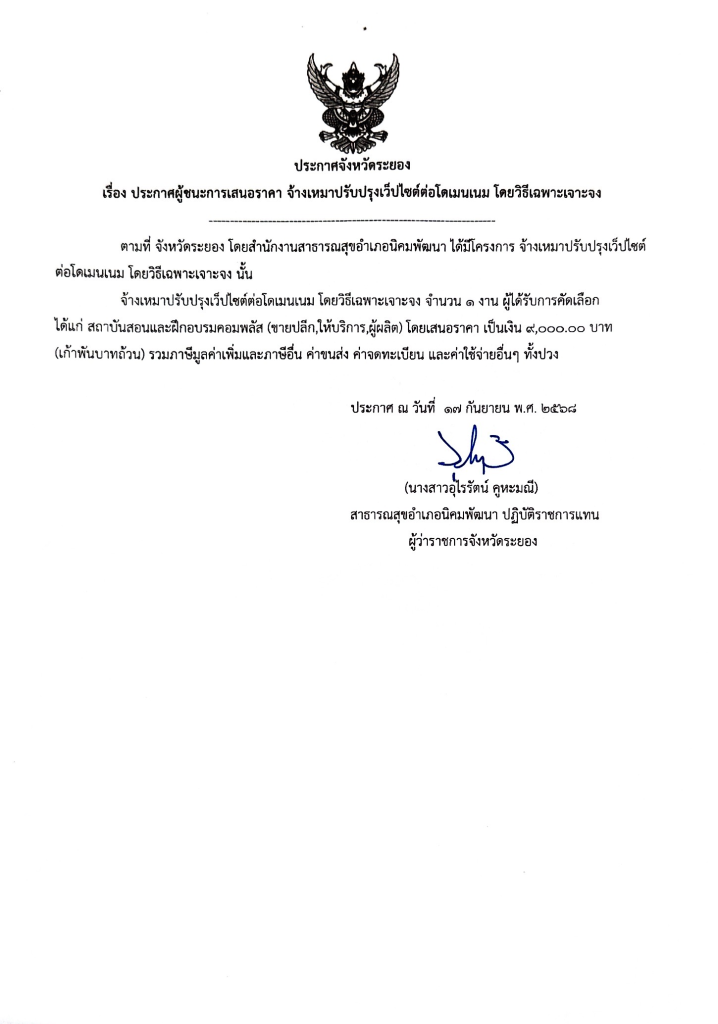 จัดซื้อ-จัดจ้างประกาศผู้ชนะการเสนอราคา จ้างเหมาปรับปรุงเว็ปไซต์ต่อโดเมนเนม โดยวิธีเฉพาะเจาะจง admin4 weeks ago3 weeks ago01 mins Post navigation Previous: ประกาศผู้ชนะการเสนอราคา จ้างเหมาตัดหญ้า และตัดแต่งกิ่งต้นไม้ ด้านหน้า ด้านหลัง และบริเวณพื้นที่ของสำนักงานสาธารณสุขอำเภอนิคมพัฒนา จำนวน 3 ไร่ 2 งาน 37 ตารางวา จำนวน 1 งาน โดยวิธีเฉพาะเจาะจงNext: ประกาศผู้ชนะการเสนอราคา จ้างซ่อมบำรุงครุภัณฑ์คอมพิวเตอร์ จำนวน 1 เครื่อง โดยวิธีเฉพาะเจาะจง Leave a Reply Cancel replyYour email address will not be published. Required fields are marked *Comment * Name * Email * Website Save my name, email, and website in this browser for the next time I comment.