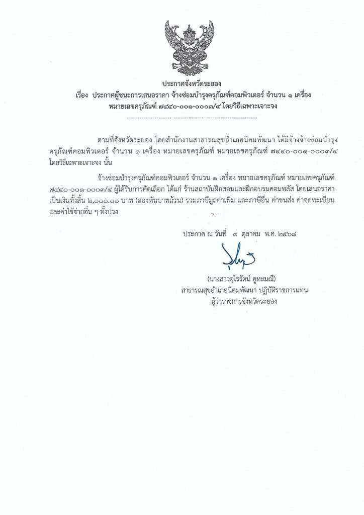 จัดซื้อ-จัดจ้างประกาศผู้ชนะการเสนอราคา จ้างซ่อมบำรุงครุภัณฑ์คอมพิวเตอร์ จำนวน 1 เครื่อง โดยวิธีเฉพาะเจาะจง admin2 months ago1 month ago01 mins Post navigation Previous: ประกาศผู้ชนะการเสนอราคา จ้างเหมาปรับปรุงเว็ปไซต์ต่อโดเมนเนม โดยวิธีเฉพาะเจาะจงNext: ประกาศผู้ชนะการเสนอราคา จัดซื้อพวงมาลาดอกไม้สด จำนวน 1 พวง โดยวิธีเฉพาะเจาะจง Leave a Reply Cancel replyYour email address will not be published. Required fields are marked *Comment * Name * Email * Website Save my name, email, and website in this browser for the next time I comment.