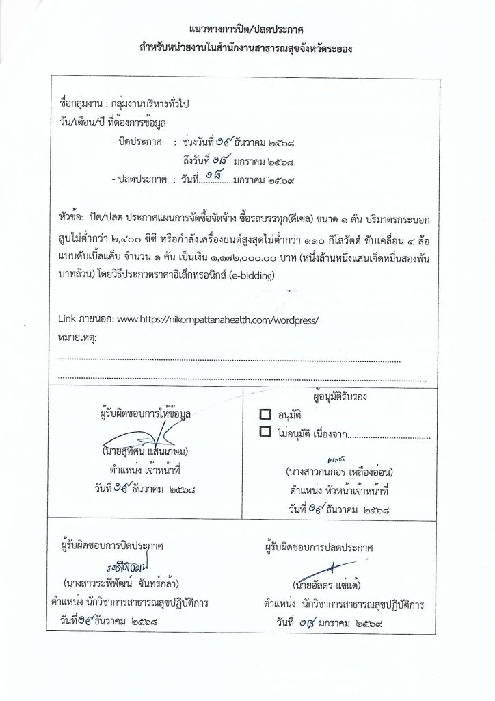 จัดซื้อ-จัดจ้างเรื่อง ขออนุญาตประกาศเผยแพร่ผ่านเว็บไซต์ของหน่วยงานและปิดประกาศโดยเปิดเผย ณ สถานที่ปิดประกาศ admin2 months ago2 months ago01 mins Post navigation Previous: ประกาศผู้ชนะการเสนอราคา จ้างทำป้ายไวนิล จำนวน 2 ป้าย โดยวิธีเฉพาะเจาะจงNext: ขออนุญาตประกาศเผยแพร่ผ่านเว็บไซต์ของหน่วยงานและปิดประกาศโดยเปิดเผย ณ สถานที่ปิดประกาศ Leave a Reply Cancel replyYour email address will not be published. Required fields are marked *Comment * Name * Email * Website Save my name, email, and website in this browser for the next time I comment.