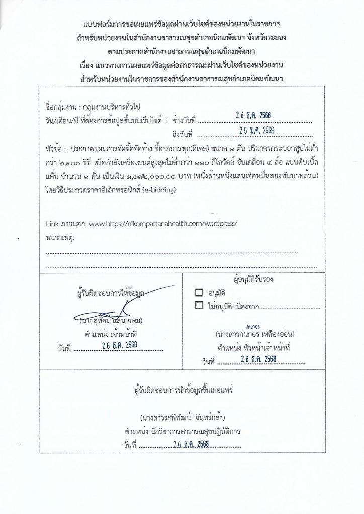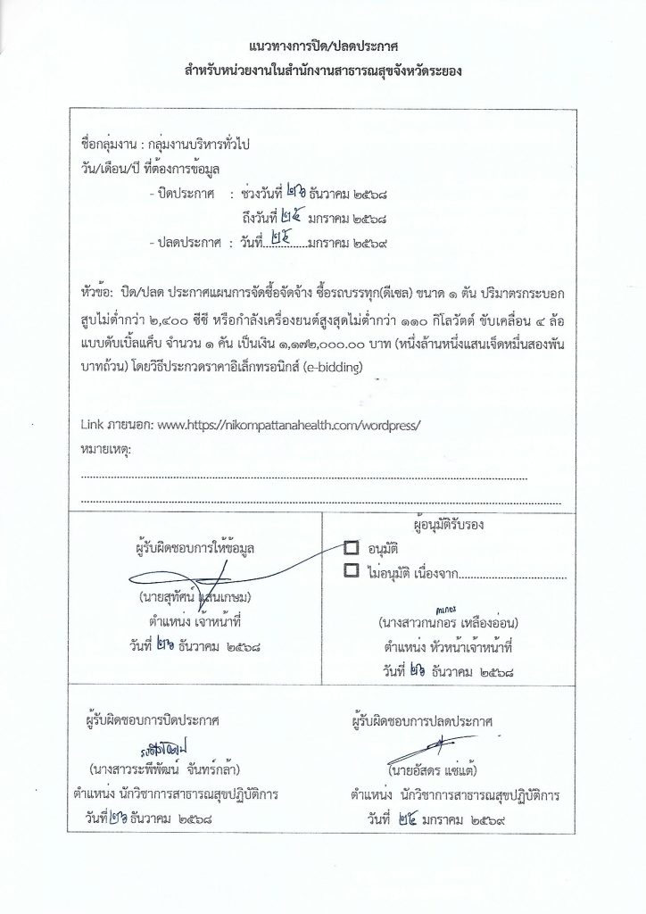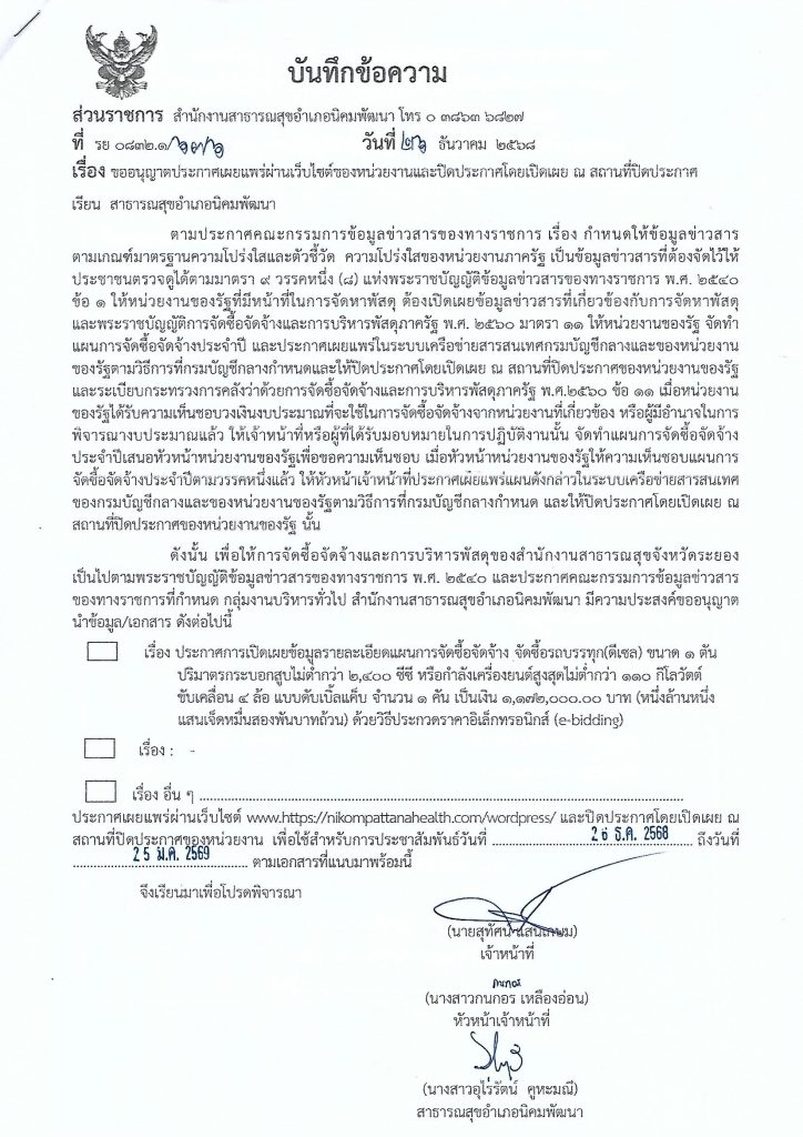 จัดซื้อ-จัดจ้างขออนุญาตประกาศเผยแพร่ผ่านเว็บไซต์ของหน่วยงานและปิดประกาศโดยเปิดเผย ณ สถานที่ปิดประกาศ admin2 weeks ago2 days ago01 mins Post navigation Previous: เรื่อง ขออนุญาตประกาศเผยแพร่ผ่านเว็บไซต์ของหน่วยงานและปิดประกาศโดยเปิดเผย ณ สถานที่ปิดประกาศ Leave a Reply Cancel replyYour email address will not be published. Required fields are marked *Comment * Name * Email * Website Save my name, email, and website in this browser for the next time I comment.